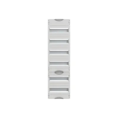 2CPX054497R9999 ABB: Interior fitting system, series Distribution panels, mounted on EDF-Profile, for DIN rail mounting devices, Rated operational voltage 400V AC 50 Hz, dimensions in mm (H x W x D): 900 x 250 x 110, Grid unit 6 GU, Overall height 2, panel width 1, Space units 72, Row distance in mm: 125, covers out of Plastic, 90 degree press and turn closure, RAL 7035, usuable as of the cabinet depth of 110 mm, without N/PE without terminal