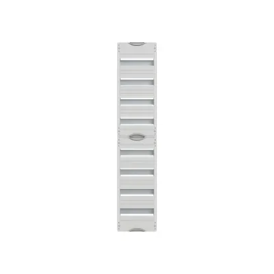 2CPX054499R9999 ABB: Interior fitting system, series Distribution panels, mounted on EDF-Profile, for DIN rail mounting devices, Rated operational voltage 400V AC 50 Hz, dimensions in mm (H x W x D): 1200 x 250 x 110, Grid unit 8 GU, Overall height 4, panel width 1, Space units 96, Row distance in mm: 125, covers out of Plastic, 90 degree press and turn closure, RAL 7035, usuable as of the cabinet depth of 110 mm, without N/PE without terminal
