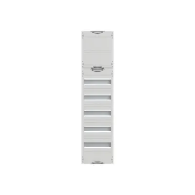 2CPX054502R9999 ABB: Interior fitting system, series Distribution panels, mounted on EDF-Profile, for DIN rail devices and DIN rail terminals, Rated operational voltage 400V AC 50 Hz, dimensions in mm (H x W x D): 1050 x 250 x 110, Grid unit 7 GU, Overall height 3, panel width 1, Space units 84, Row distance in mm: 125, covers out of Plastic, 90 degree press and turn closure, RAL 7035, usuable as of the cabinet depth of 110 mm, without N/PE without terminal