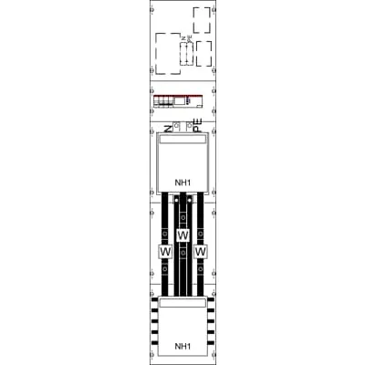 2CPX056012R9999 ABB: Measurement and metering transformer board for EEG, fully assembled module, for the internal use, degree of protection IP2XC, applicable standards: EN 61439-1, EN 61439-2, VDE AR-N 4105:2018-11, Rated operational voltage 415V AC 50/60 Hz, rated current 115 A, Rated current of the assembly of switchgear and controlgear InA 115 A, in RAL 7035, dimensions in mm (H x W x D): 1350 x 250 x 160, Earthing system TN-S, 5-pole, busbar system Cu busbars 12 x 5 mm 5-pole, parting point before the current transformer Fuse switch disconnector NH1/250A, current transformer range CT mounting pad with CT rail 170 x 30 x 5 mm, parting point after the current transformer 2 Fuse switch disconnector NH00/250 A (M10), primary wiring L1-L3 Cu-Busbar 30 x 5 und 20 x 5, PE+N Cu-Busbar 20 x 5 mm, Grid unit 9 GU, Overall height 5, panel width 1, Space units 108, covers out of Plastic, Quick sealable connection, RAL 7035