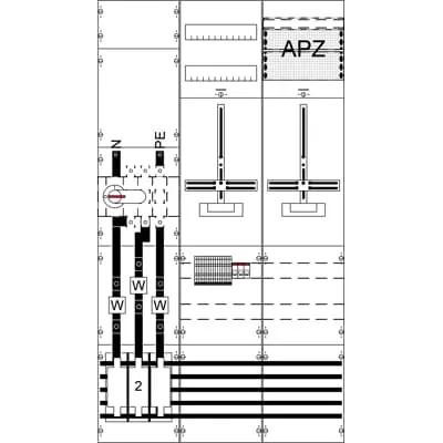 2CPX056028R9999 ABB: Measurement and metering transformer board, fully assembled module, with Metering cross, for the internal use, degree of protection IP2XC, applicable standards: EN 61439-1, EN 61439-2, Rated operational voltage 415V AC 50/60 Hz, rated current 250 A, Rated current of the assembly of switchgear and controlgear InA 250 A, in RAL 7035, dimensions in mm (H x W x D): 1350 x 750 x 160, Earthing system TN-S, 5-pole, Number of SG spaces 1, Number of transformer meter spaces 1, Pre-wired according requirements DSO, voltage path 3 low voltage path switches B10/25kA overvoltage path category 3, busbar system Cu busbars 2 x 12 x 5 mm 5-pole, parting point before the current transformer Fuse base element NH2/400 A, current transformer range CT mounting pad with CT rail 170 x 30 x 5 mm, parting point after the current transformer Switch 400 A / 3-pole (M10), primary wiring L1-L3 Cu-Busbar 30 x 5 und 20 x 5, PE+N Cu-Busbar 20 x 5 mm, Accessible to Cu busbar, outgoing: terminals screws to fuse disconnetor and PE+N busbar, Connection N+PE (M10), Grid unit 9 GU, Overall height 5, panel width 3, Space units 216, covers out of Plastic, Quick sealable connection, RAL 7035