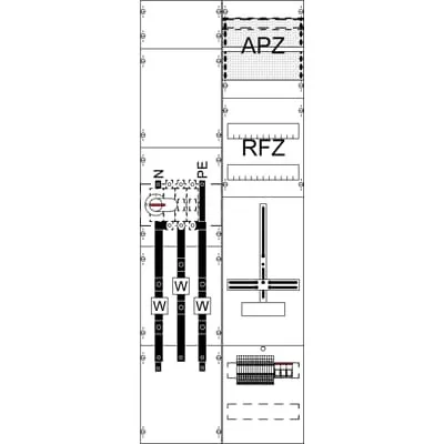 2CPX056032R9999 ABB: Measurement and metering transformer board, fully assembled module, with Metering cross, for the internal use, degree of protection IP2XC, applicable standards: EN 61439-1, EN 61439-2, Rated operational voltage 415V AC 50/60 Hz, rated current 220 A, Rated current of the assembly of switchgear and controlgear InA 222 A, in RAL 7035, dimensions in mm (H x W x D): 1350 x 500 x 160, Earthing system TN-S, 5-pole, Number of transformer meter spaces 1, Pre-wired according requirements DSO, voltage path Fuse-disconnector switch, 3 pole with fuses 10,3 x 38mm 2A, busbar system Cu busbars 12 x 5 mm 5-pole, parting point before the current transformer Fuse switch disconnector NH1/250 A, current transformer range CT mounting pad with CT rail 170 x 30 x 5 mm, parting point after the current transformer Switch disconnector 250 A / 4-pole, primary wiring L1-L3 Cu-Busbar 30 x 5 und 20 x 5, PE+N Cu-Busbar 20 x 5 mm, Connection N+PE (M8), Grid unit 9 GU, Overall height 5, panel width 2, Space units 216, covers out of Plastic, Quick sealable connection, RAL 7035