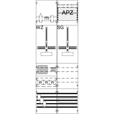 2CPX056127R9999 ABB: Measurement and metering transformer board, series ComfortLine, fully assembled module, with Metering cross, for the internal use, degree of protection IP2XC, applicable standards: DIN VDE 0603-2-2, VDE AR-N 4100:2019-04, Rated operational voltage 415V AC 50/60 Hz, rated current 63 A, Rated current of the assembly of switchgear and controlgear InA 63 A, in RAL 7035, dimensions in mm (H x W x D): 1350 x 500 x 160, Earthing system TN-S, 5-pole, Number of SG spaces 1, Number of transformer meter spaces 1, Pre-wired according requirements DSO, voltage path 3 low voltage path switches B10/25kA overvoltage path category 3, busbar system Cu busbars 12 x 5 mm 5-pole, parting point before the current transformer Fuse base elements 1x3xNH00/125 A, current transformer range Mounting plate for Single-CT for threading the cable through, parting point after the current transformer Switch 125 A / 3-pole (10-70qmm), primary wiring 35 qmm, N+PE 2 Connections N+PE 50qmm, Grid unit 9 GU, Overall height 5, panel width 2, Space units 216, covers out of Plastic, Quick sealable connection, RAL 7035
