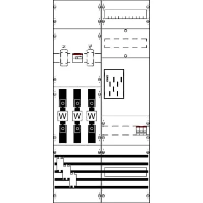 2CPX056132R9999 ABB: Measurement and metering transformer board, series ComfortLine, fully assembled module, with BKE-I, for the internal use, degree of protection IP2XC, applicable standards: DIN VDE 0603-2-2, VDE AR-N 4100:2019-04, Rated operational voltage 415V AC 50/60 Hz, rated current 100 A, Rated current of the assembly of switchgear and controlgear InA 100 A, in RAL 7035, dimensions in mm (H x W x D): 1050 x 500 x 160, Earthing system TN-S, 5-pole, Stecktechnik, Number of transformer meter spaces 1, Pre-wired according requirements DSO, voltage path 3 low voltage path switches B10/25kA overvoltage path category 3, busbar system Cu busbars 12 x 5 mm 5-pole, parting point before the current transformer Fuse base elements 1x3xNH00/125 A, current transformer range CT mounting pad with CT rail 170 x 30 x 5 mm, parting point after the current transformer Switch 125 A / 3-pole (10-70qmm), primary wiring 35 qmm, N+PE 2 Connections N+PE 95qmm, Grid unit 7 GU, Overall height 3, panel width 2, Space units 168, covers out of Plastic, Quick sealable connection, RAL 7035