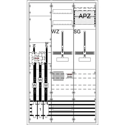 2CPX056143R9999 ABB: Measurement and metering transformer cabinet, series A, fully assembled cabinet, with Metering cross, Expansion option: Lateral, for the internal use, with Door, class of protection II (double insulated), degree of protection IP31, applicable standards: DIN VDE 0603-2-2, VDE AR-N 4100:2019-04, Rated operational voltage 415V AC 50/60 Hz, rated current 200 A, Rated current of the assembly of switchgear and controlgear InA 200 A, Powder-coated, in RAL 9016, enclosure out of Sheet steel / Plastic, double door, dimensions in mm (H x W x D): 1400 x 800 x 215, Metering module pre-wired, Earthing system TN-S, 5-pole, net side compartment, meter space: with busbar, Number of SG spaces 1, Number of transformer meter spaces 1, net side compartment, meter space: with busbar, Pre-wired according requirements DSO, voltage path 3 low voltage path switches B10/25kA overvoltage path category 3, busbar system Cu busbars 12 x 5 mm 5-pole, parting point before the current transformer Fuse base for NH2/400 A, current transformer range CT mounting pad with CT rail 170 x 30 x 5 mm, parting point after the current transformer Switch disconnector 250 A / 4-pole, primary wiring L1-L3 Cu-Busbar 30 x 5 und 20 x 5, PE+N Cu-Busbar 20 x 5 mm, Connection N+PE (M8), Grid unit 9 GU, Overall height 5, panel width 3, Space units 324, covers out of Plastic, Quick sealable connection, RAL 7035