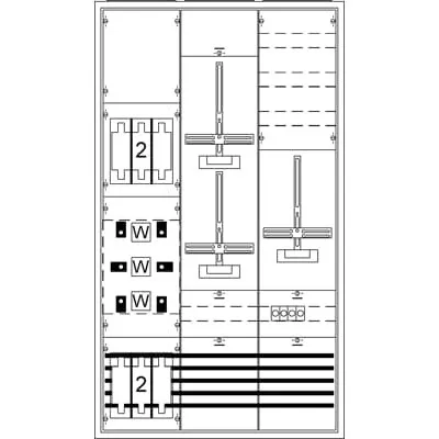 2CPX056180R9999 ABB: Measurement and metering transformer cabinet, series TwinLine, fully assembled cabinet, for the internal use, with Door, class of protection II (double insulated), degree of protection IP55, applicable standards: EN 61439-1, EN 61439-2, VDE AR-N 4105:2018-11, Rated operational voltage 415V AC 50/60 Hz, rated current 200 A, Rated current of the assembly of switchgear and controlgear InA 200 A, Powder-coated, in RAL 7035, enclosure out of Sheet steel / Plastic, single-leaf door, door hinge right or left, dimensions in mm (H x W x D): 1400 x 800 x 225, Earthing system TN-S, 5-pole, Meter replacement plate metering transformer conversion board size 1/2 or 2 (KF421, KF414), busbar system Cu busbars 12 x 5 mm 5-pole, parting point before the current transformer Fuse switch disconnector NH1/250A, current transformer range CT mounting pad with CT rail 170 x 30 x 5 mm, parting point after the current transformer Switch disconnector 250 A / 4-pole, primary wiring L1-L3 Cu-Busbar 30 x 5 und 20 x 5, PE+N Cu-Busbar 20 x 5 mm, Connection N+PE (M8), Note: metering transformer conversion board KF414 required, Busbar terminals should be ordered seperately, Grid unit 9 GU, Overall height 5, panel width 3, Space units 324, covers out of Plastic, Quick sealable connection, RAL 7035