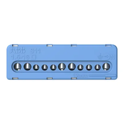 2CPX063168R9999 ABB: N screw type terminal for plug-in carrier, assembly without tools using simple plug-in and latching equipment, clear color-coding: N = blue, flexible terminal system for multiple N-circuits, number of terminals: 5 x 16 mm² + 6 x 6 mm² (screw connection technology)