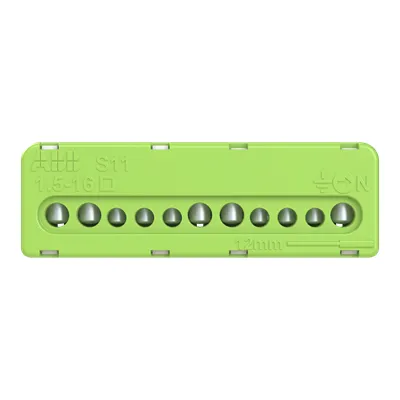 2CPX063173R9999 ABB: PE screw type terminal for plug-in carrier, assembly without tools using simple plug-in and latching equipment, clear color-coding: PE = green, flexible terminal system , number of terminals: 5 x 16 mm² + 6 x 6 mm² (screw connection technology)