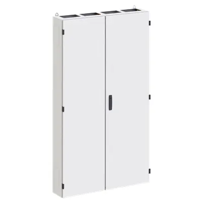 2CPX070562R9999 ABB: Floor-standing cabinet, Expansion option: Lateral and bottom, class of protection I (earthed), degree of protection IP55, Impact strength IK08, Powder-coated, in RAL 7035, enclosure out of Steel, double door, dimensions in mm (H x W x D): 1850 x 1050 x 350, Space units 576