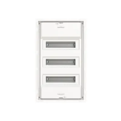 2CPX077847R9999 ABB: Consumer unit, series UK600, Expansion option: Lateral and bottom, for the internal use, without closed cover without door, class of protection II (double insulated), degree of protection IP30, applicable standards: EN 60670-24, Impact strength IK07, Rated operational voltage 400V AC 50/60 Hz, rated current 63 A, Glow wire resistance 850°C, in RAL 9016, enclosure out of thermoplast, without frame and without door, cable entry on top via cable entry slide part is pre-punched, on bottom via cable entry slide part is pre-punched, on side via pre-punched, rear wall pre-punched, dimensions in mm (H x W x D): 597 x 362 x 97, Space units 36, Row distance in mm: 125, covers out of Plastic, 90 degree press and turn closure, with N/PE screw terminal, cable fastening rail integrated, assembled with device carrier, device support removable