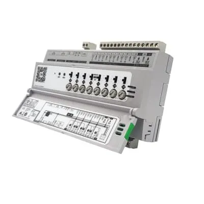 2CQG201017R1021 ABB: 16-Point BACnet/IP B-BC programmable controller with HOA switches and potentiometers for control and monitoring of small plant or HVAC equipment. Controller features 8 UniPuts™ with Relay outputs (software configurable for AI, AO, DI or DO-R (Relay)) and 8 UI. Includes support for 12 Modbus (TCP or RTU) devices or 120 Modbus Points.