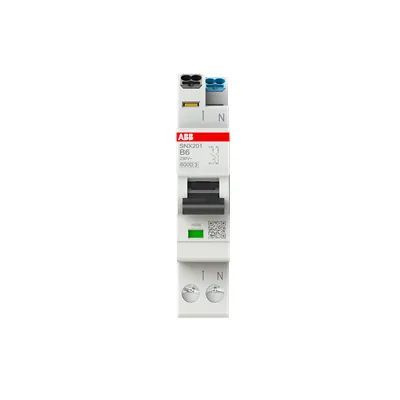 2CSS255301R0065 ABB: The SNX201 series miniature circuit breaker is a 1P+N device in 1 module for the protection of circuits against overload and short circuit. Neutral is on the right. SNX201 is part of the FlexLine portfolio.