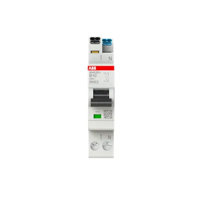 2CSS255301R0105 ABB: The SNX201 series miniature circuit breaker is a 1P+N device in 1 module for the protection of circuits against overload and short circuit. Neutral is on the right. SNX201 is part of the FlexLine portfolio.