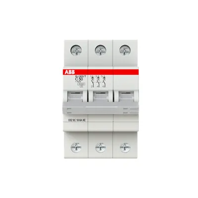 2TAZ144300R0504 ABB: SJ203T-C50 Miniature Circuit Breaker, C-Char, 3kA, 50A, 3P
