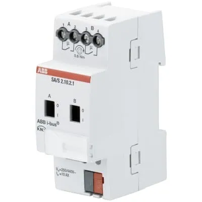 2TAZ710021R2101 ABB: Uses potential free contacts to switch 2 independent electrical loads via the ABB i-bus®. Manual operation and display of the switching state of the contacts. The 10AX device is especially suited for loads with high surge currents e.g. flourescent lighting (AX) acc. EN 60669.