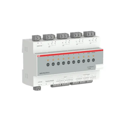2TAZ711081R5061 ABB: Blind-HVAC-Relay module is a device with a combination of RS485 port, 230VAC potential free contact relay outputs, 0-10V outputs channel and binary inputs channels. The module comes with the outputs channel meant for control of the fan coil units. It can control cooling, heating, cooling and heating (0-10V type of valves) with three fan speeds (On/off, 0-10VDC) types of fan coil units. The 230VAC potential free contact relay outputs are suitable for loads with high surge currents e.g. fluorescent/LED lighting (with precondition) and blind motors. The module has multiple 0-10V output channels that can be configured to control 0-10VDC dimming. The module has binary input channels to enhance the quantities of input required. The module is equipped with zero-crossing protection features to ensure the robustness of the module. The module comes with the manual operation buttons for checking or testing during the commissioning stage.