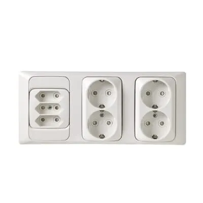 2TKA00000124 ABB: The socket combination includes: 2 x 2-piece earthed socket, 3-piece european socket, 100mm / 85mm adapter and 3-piece cover plate 100mm. Not pre-connected. IP21 on a smooth surface. Delivery in a plastic bag labeled.