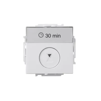 2TKA00000875 ABB: Fixed time options: 15min, 30min, 1h, 2h, 4h and 8h. Exchangeable labels with the time options to mark center plate with selected time. 230 VAC, 50Hz, 0 - 40C, IP21, 2-pole wiring. 10A resistiv load (2300W), 2AX-load (e.g. fluorescent lamp). Screw terminals max 2,5mm2. Signal light when active._x000D_