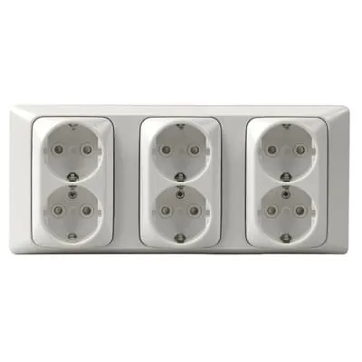 2TKA00001753 ABB: Wall socket for TV / Home cinema, complete. IP21. Consists of 3 pcs. double wall socket w / earth and 1 pc. 3-compartment frame 100mm.