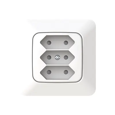 2TKA00003831 ABB: 3-gang Euro socket outlet with center plate. There are terminals for each contact of the socket outlet for max 4 rigid wires and 2 X-terminals for 2-rigid wires. The socket outlet insert without the cover plate is screen-protected.