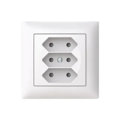 2TKA00004878 ABB: 3-gang Euro socket outlet with cover plate. There are terminals for each contact of the socket outlet for max 4 rigid wires and 2 X-terminals for 2-rigid wires. The socket outlet insert without the cover plate is screen-protected. Bio-circular plastics used in the frame and centre plate.