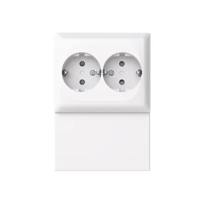 2TKA00005212 ABB: Double socket outlet for lath installation. The outlet has terminals for each contact of the socket outlet for max 4 rigid wires. Safety+ featured in the insert. Bio-circular plastics used in the bottom and centre plate.