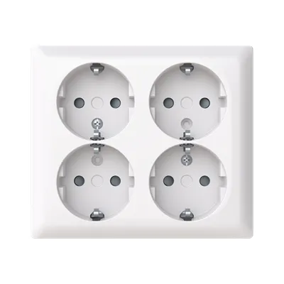 2TKA00005219 ABB: This socket outlet has two times 2-gang socket outlets in one unit, a total of four Schuko outlets. The socket outlet inserts are internally connected. In one socket outlet insert there are terminals for each contact of the socket outlet for max 4 rigid wires. Bio-circular plastics used in the bottom and centre plate.