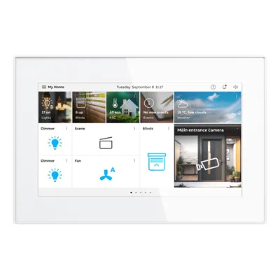 Control, monitor, and manage your entire system with one device: switching, dimming, sliders, blinds, RGBW control, step switch, scene switch, display element, and audio control.