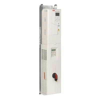 3AUA0000225759 ABB: The ACH580 with ABB E-Clipse bypass has an integrated UL (NEMA) Type 1 enclosure with a bypass motor starter and is available from 1 to 75 hp at 230/460/575 V. The ACH580 with ABB E-Clipse bypass provides an input disconnect switch or circuit breaker, both including fast acting drive fuses, with door mounted and interlocked switch (padlockable in the OFF position), a bypass starter, electronic motor overload protection, a door mounted control panel with graphical display for local control, provisions for external control connections, and serial communications capability
