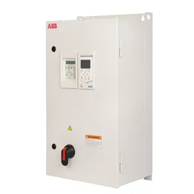 3AUA0000225792 ABB: The ACH580 with ABB E-Clipse bypass has an integrated UL (NEMA) Type 1, 12 or 3R enclosure with a bypass motor starter and is available from 1 to 350 hp at 230/460/575 V. The ACH580 with ABB E-Clipse bypass provides an input disconnect switch or circuit breaker with door mounted and interlocked switch (padlockable in the OFF position), a bypass starter, electronic motor overload protection, a door mounted control panel with graphical display for local control, provisions for external control connections, and serial communications capability