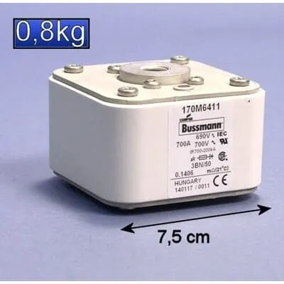 Feature: 700 A, 690 V rating with flush-end contact, compatible with 170M6411 fuses. Business Impact: Ensures secure connections, reduces contact resistance, and improves reliability in high-current circuits. Application: Ideal for panel boards, switchgear assemblies, and motor control centers in heavy industry where uptime matters. Paragraph 2: Feature: 1-day lead time and real-time stock visibility across warehouses (BRAPR001EXPU). Business Impact: Shortens procurement cycles and minimizes downtime during maintenance windows. Application: Engineering procurement in manufacturing, energy utilities, and process industries needing rapid replenishment. Paragraph 3: Feature: Hungary origin with clear stock-location data (Storage Location 4001). Business Impact: Facilitates traceability, reduces shipping risk, and enables faster batch auditing. Application: Global supply chains requiring transparency and consistent sourcing. Paragraph 4: Feature: Warranty/return policy (Product under warranty must be returned). Business Impact: Lowers total cost of ownership and simplifies after-sales processes. Application: Maintenance planning and warranty management. Paragraph 5: Feature: Technical information includes 700 A;690 V;3;AR;FLUSH END CONTACT. Business Impact: Simplifies specification verification, improves installer confidence, and reduces risk of mis-matching parts. Application: Field installation in high-current feeders and industrial automation contexts.
