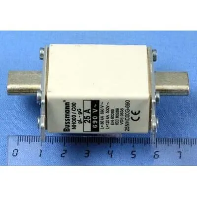 Supplier data references the family as including 25A, 690V ratings for similar ABB/NHN fuses. For the exact rating of model 68298938, consult the datasheet or contact the supplier to confirm the precise current and voltage ratings before procurement.
