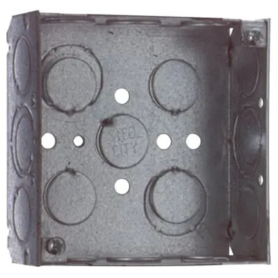 7TAA001060R0013 ABB: Square Box, 21 Cubic Inches, 4 Inch Square x 1-1/2 Inch Deep, 1/2 Inch and 3/4 Inch Eccentric Knockouts, Galvanized Steel, Welded Construction, 10-1/2 Inch #12 AWG Solid Ground Wire Pigtail, For use with Conduit
