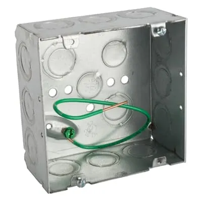 7TAA001210R0005 ABB: Square Box, 42 Cubic Inches, 4-11/16 Inches Square x 2-1/8 Inches Deep, 1/2 Inch and 3/4 Inch Eccentric Knockouts, Pre-Galvanized Steel, Welded Construction, Suitable for use without a Bonding Jumper in Circuits Above or Below 250 Volts and 10-1/2 Inch #12 AWG Solid Wire Pigtail, For use with Conduit