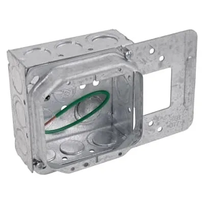 7TAA001450R0008 ABB: Pre-Fabricated, Single Gang Outlet Box, 30.3 Cubic Inches, 4 Inch Square x 2-1/8 Inch Deep x 5/8 Inch Raised, 1/2 Inch and 3/4 Inch Eccentric Knockouts, Pre-Galvanized Steel, with Box Support Cover, For use with Conduit