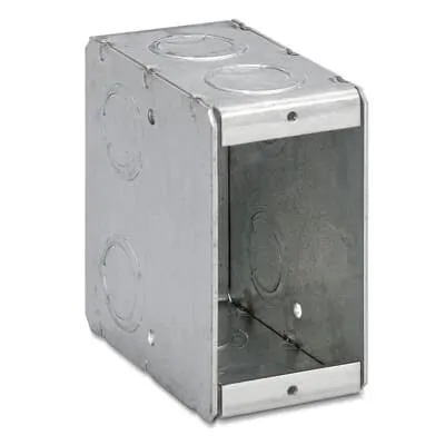 7TAA001530R0001 ABB: Single Gang Masonry Box, 22.0 Cubic Inches, 3-3/4 Inches Long x 1-7/8 Inches Wide x 3-1/2 Inches Deep, 1/2 Inch and 3/4 Inch Concentric Knockouts, Galvanized Steel, Welded Construction, with #12 AWG Solid Ground Wire Pigtail, For use with Conduit