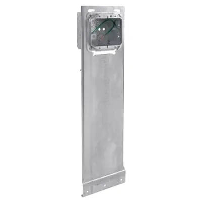 7TAA001980R0050 ABB: Pre-Fabricated, Single Gang Outlet Box, 30.3 Cubic Inches, 4 Inch Square x 2-1/8 Inch Deep, 1/2 and 3/4 Inch Eccentric Knockouts, 5/8 Inch Raised Box Cover, with Grounding #12 AWG Solid Ground Wire Pigtail, C-3 Armored Cable Clamp, and 18 Inch Vertical Mounting Bracket, For Use with Armored/Metal Clad Cable