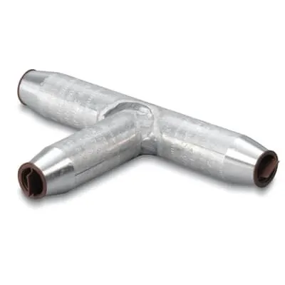 Made from Aluminum which provides high strength and high conductivity. Dual-rated. Use with Aluminum and Copper conductors. Prefilled with oxide inhibitor to prevent oxidation and keep out moisture. All Tees marked with conductor sizes and die reference for easy identification.