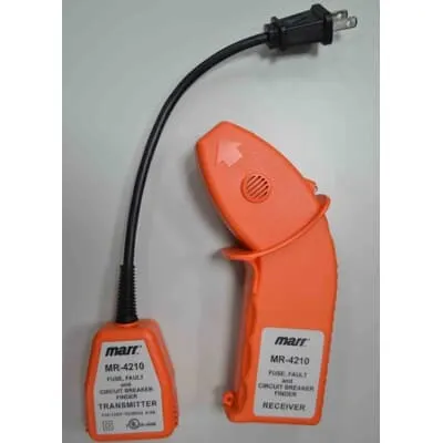 Yes. The unit features reinforced casings designed for rugged factory floors and maintenance scenarios. The battery-powered receiver ensures operation even during power interruptions, while the wall-outlet transmitter minimizes cabling clutter. Combined with the carrying pouch and MR-4210 documentation, this setup supports reliable performance in busy industrial spaces and service environments where quick breaker identification is essential.