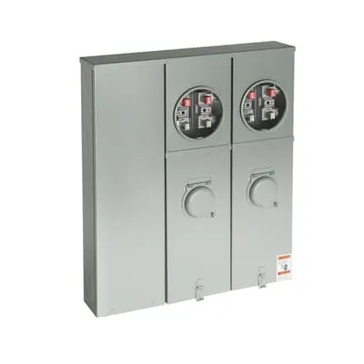 7TBA050260R0145 ABB: Meter socket 200 amperes. Underground. 2 gang, provision for Siemens 2 x (QJ), 200 amperes 2 pole 10 kA rated circuit breakers.