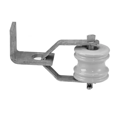 7TBA050320R0134 ABB: Clevis. Constructed of 1/8 inch x 3/4 inch curved mild steel has 3/8 inch diameter pin Swivel type complete with No. IB134 insulator strong 1/4 inch angle bracket 11/16 inch round mounting hole. All ferrous parts are hod dip galvanized.