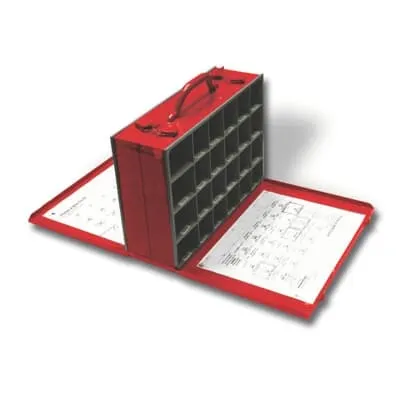 7TBA131120R0000 ABB: 2 Sided Rugged Metal Carrying Case to Complete the Connector Offering, The reverse side of this kit allows you to keep all your color coded crimping dies in one convenient location. A cable vs die reference chart inside each cover lets you sort and organize all your compression connector dies for either copper or aluminum conductors.