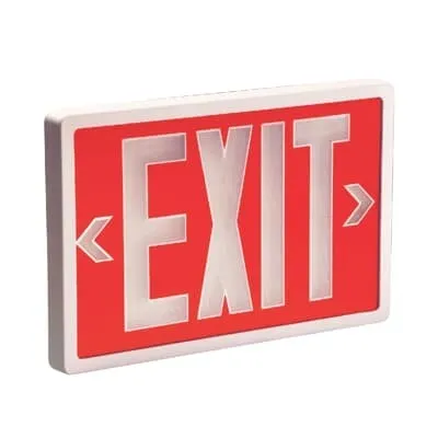 7TBA133110R0118 ABB: Exit Sign, single face, Life Years: 20 years, Housing Colour: aluminum frame, Legend Colour: red, Letter Height Dimension: 6, Option (shield): polycarbonate shield