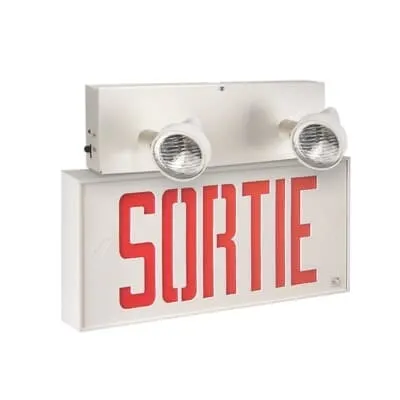 7TBA134170R0074 ABB: Sortie Combination Unit, single face, universal mount, Colour: factory white, Battery Type: lead-calcium, 120/347VAC, Voltage DC: 12V, Battery Wattage (W): 72, two lamps, Lamp Type: MR16 LED, Lamp Voltage: 12V, Lamp Wattage: 4W, self-powered, Head Style: standard, Battery Run Time (Minimum): 30 minutes