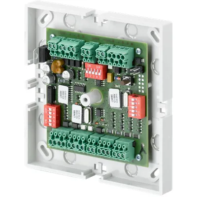 GHQ3050031R0001 ABB: For connection of the SafeKey components as well as all components required for a setting door (magnetic contacts, lock bolt switching contact, bolt lock, internal siren). For direct connection to the security-bus of the Intrusion Alarm Panel GM/A 8.1 or L240. The management of the electronic keys from the SafeKey range is undertaken completely via the WebUI of the Security Panel GM/A 8.1 or via the keypadof the L240 intrusion alarm panel.
