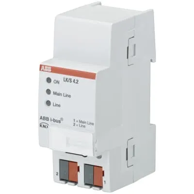 GHQ6050067R0001 ABB: Can be used as to connect EIB/KNX lines or areas. The lines or areas are galvanically isolated from one another. Filter tables can be used to reduce the telegram traffic between lines or areas. Connection to data rail via data rail contacts.