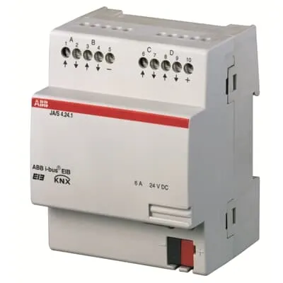 GHQ6310073R0111 ABB: For controlling 4 independent shutter or sunblind drives via ABB i-bus® EIB/KNX including the functions Up/Down, Step/ Stop, Move to position, Sun protection automatic control and Heating/ cooling automatic control.