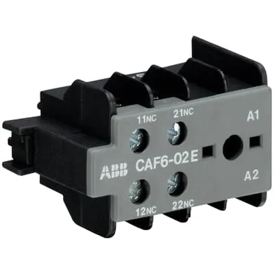 GJL1201330R0010 ABB: The CAF6-02E is an auxiliary contact for front mounting with 2 auxiliary contact and screw terminals.