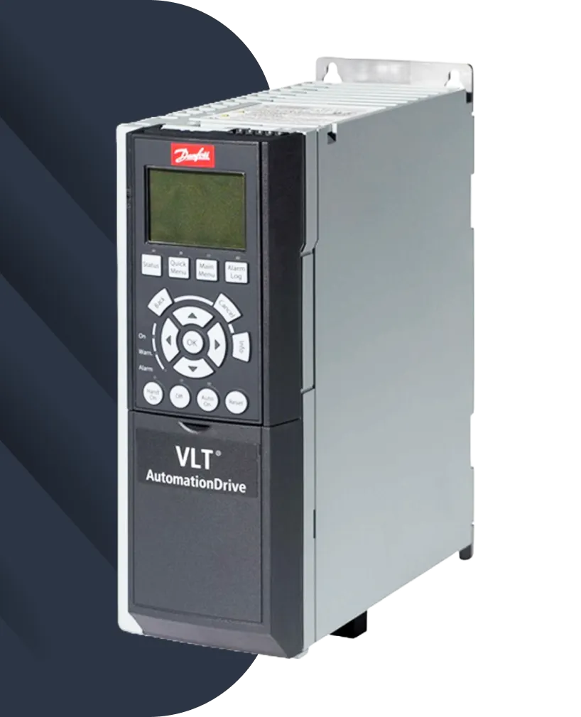 Industry-leading VLT AutomationDrive FC 302 variable frequency drive for precise motor control in manufacturing and material handling. Energy-efficient operation, built-in PLC functionality, 0.25kW to 1.4MW power range.