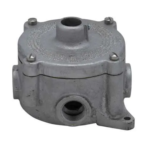 Feature: Feraloy iron alloy construction provides durable enclosure protection in demanding environments. Business Impact: Reduces maintenance costs, downtime, and replacement cycles. Application: Ideal for hazardous industrial spaces such as chemical processing, oil and gas, and mining control systems. Feature: Accepts 1/2 inch and 3/4 inch trade sizes. Business Impact: Simplifies wiring, reduces spare parts, and speeds field retrofits. Application: Panel builders and field technicians benefit from flexible conduit integration. Feature: 1/2 inch cover size. Business Impact: Enables compact access while maintaining seal integrity. Application: Space constrained panel installations in hazardous areas. Feature: NEC/CEC compliance and hazardous ratings. Business Impact: Ensures regulatory safety and reduces audit risk. Application: Industrial automation installations in plants handling flammable materials. Feature: Area classification Hazardous/Classified Locations. Business Impact: Safe operation in dangerous environments and improved worker protection. Application: Mining, chemical processing, and refineries. Feature: Hub cover and robust dimensions. Business Impact: Maintains wiring access while preserving enclosure protection during service; stable mounting in heavy-duty cabinets. Application: Oil and gas process lines and water-treatment controls.